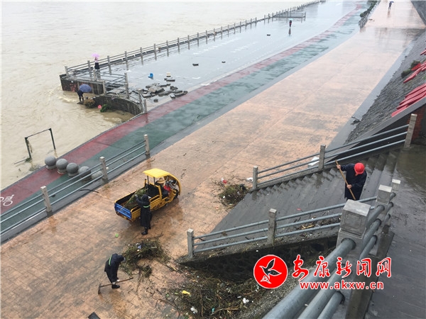 本網(wǎng)訊(記者 張喬 實(shí)習(xí)記者 馬娟)“我們昨天晚上一直注意漢江的水位,也安排的有人員值班,昨晚兩點(diǎn)多水就已經(jīng)退了,早上7點(diǎn)多我們就來打掃了。”9月17日,雨水未歇,市政園林處的工作人員正在雨中組織人員清掃洪水過后的垃圾,其中一位工作人員告訴記者。