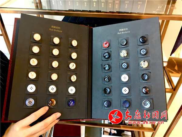 廖忠環(huán)展示的可供顧客挑選的紐扣樣品