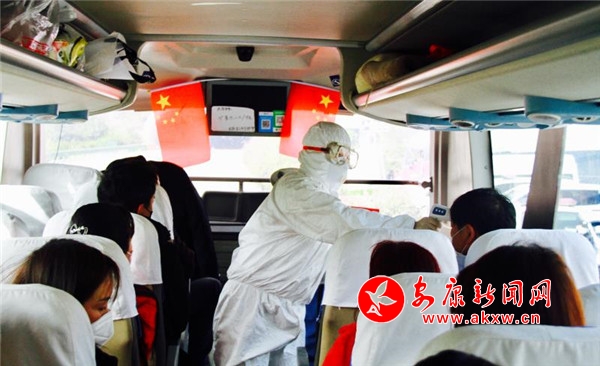 對(duì)于駛?cè)氲拇笾行涂瓦\(yùn)班車,檢測(cè)站的工作人員除了核查載客人數(shù)和相關(guān)健康證明,還要上車逐一對(duì)乘客進(jìn)行體溫檢測(cè),做到了不漏一車、不漏一人。