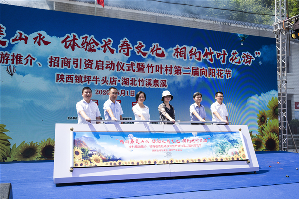 本網(wǎng)訊(記者 李俊)8月1日,艷陽高照,朵朵白云點(diǎn)綴著蔚藍(lán)的天空,金黃的向陽花將整個(gè)竹葉村裝點(diǎn)得分外靚麗!皶秤吻爻剿 體驗(yàn)長壽文化 相約竹葉花海”陜西鎮(zhèn)……