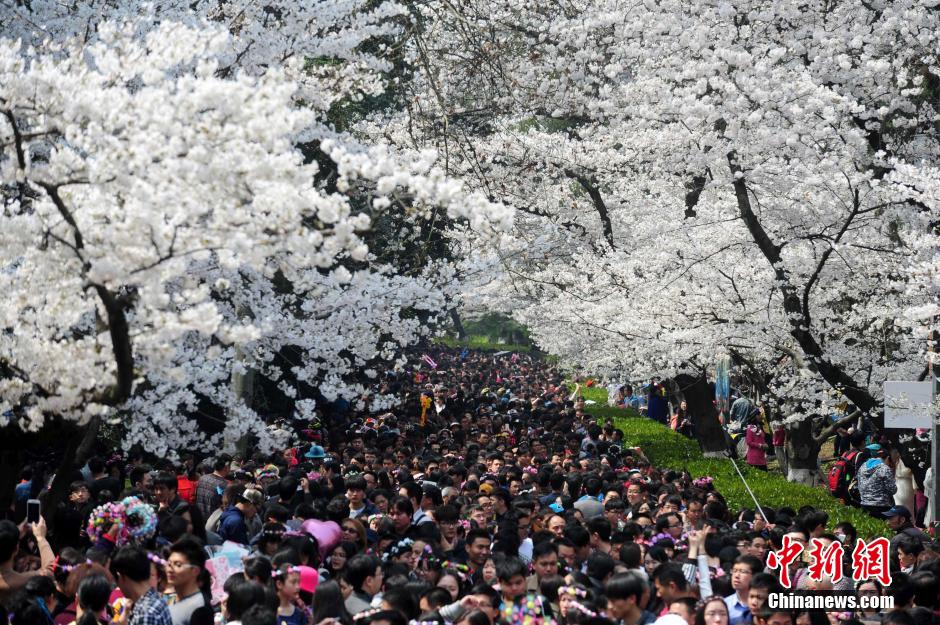 3月21日,武大櫻花盛開游客如織。當日,武大櫻花盛開的首個雙休日。長約200米的櫻花大道上1000多株櫻花競相綻放,吸引著數萬游客,使寧靜的校園變成了熱鬧的公園。中新社發(fā)張暢 攝Suf安康新聞網