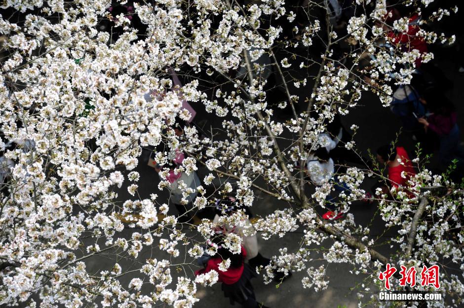 武大櫻花盡開(kāi)放 游客擠爆校園