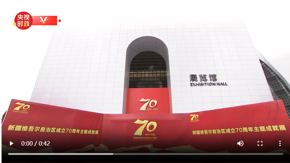上午10時(shí)30分許,習(xí)近平等來到烏魯木齊文化中心展覽館,走進(jìn)展廳參觀成就展。展覽通過“萬方樂奏換新天”“潮涌天山展宏圖”“美麗新疆鑄輝煌”3個(gè)部分,全景展現(xiàn)了70年來在中國共產(chǎn)黨堅(jiān)強(qiáng)領(lǐng)導(dǎo)下、在全國各地大力支援下,新疆各族人民團(tuán)結(jié)一心、艱苦奮斗、頑強(qiáng)拼搏取得的輝煌成就。