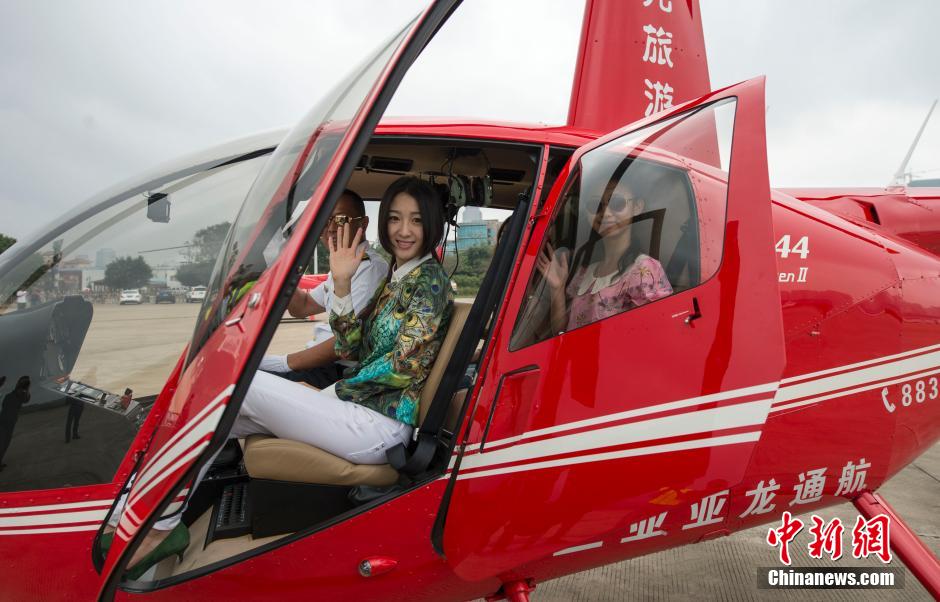 3月26日,隨著三亞亞龍通用航空公司的兩架紅色直升機在海南?谳d客啟航。標志著低空觀光游覽項目正式進駐?,游客最低花費500元人民幣即可體驗低空飛行。據(jù)了解,這種由美國羅賓遜直升機公司生產的R44雷鳥II型直升機,可乘坐4人(含飛行員),加滿油可以飛行兩個半小時,航程約600公里。目前該公司在海口已經開辟了?谑袇^(qū)、世紀大橋、火山口、假日海灘、萬綠園等景點觀光飛行。圖為游客體驗直升機低空旅游。中新社發(fā) 駱云飛 攝dc7安康新聞網(wǎng) dc7安康新聞網(wǎng)