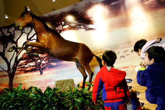 圖為市民正在觀看展覽。湯彥俊 攝1月23日,正在上?萍拣^舉行的“騏驥盛壯”馬年生肖展吸引了眾多市民前來(lái)參觀。該展覽旨在馬年春節(jié)來(lái)臨之際,以馬的生物和文化……