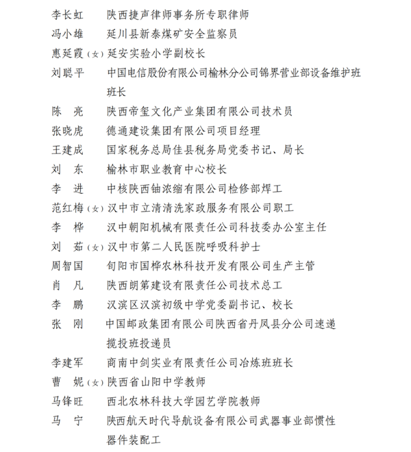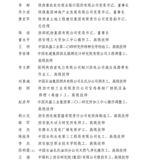 2023年陜西省五一勞動(dòng)獎(jiǎng)名單