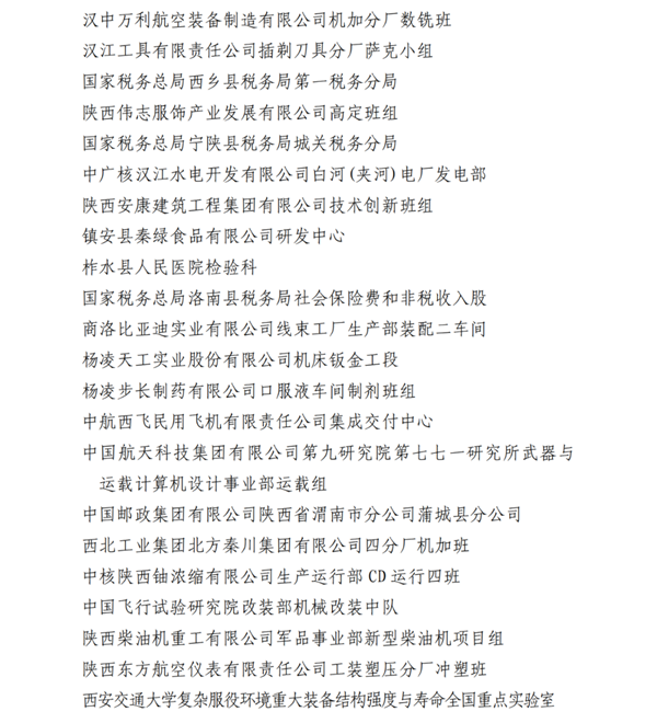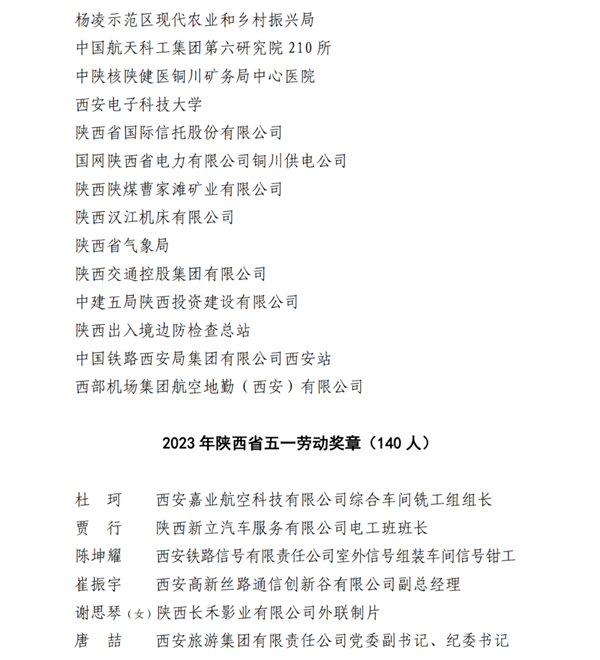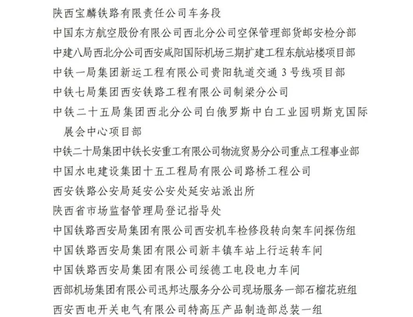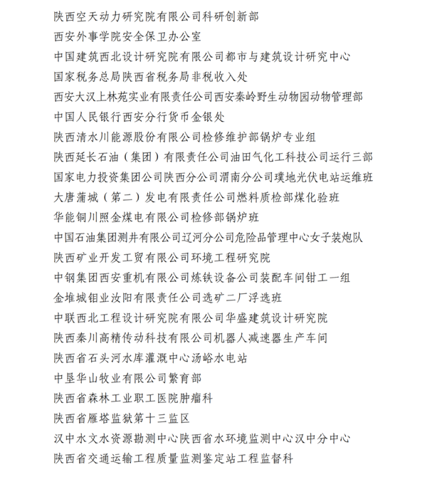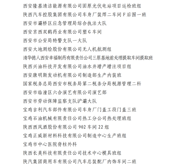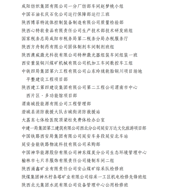 2023年陜西省工人先鋒號(hào)名單