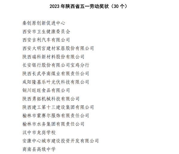 關(guān)于表彰2023年陜西省五一勞動(dòng)獎(jiǎng)和