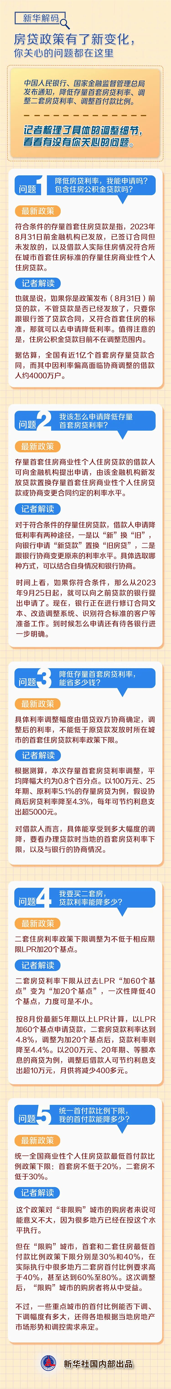 這兩天,房貸利率、首付比例變化的消息牽動購房者的心。根據(jù)中國人民銀行、國家金融監(jiān)督管理總局發(fā)布的通知,政策主要涉及降低存量首套房貸利率、調整二套房貸利率、調整首付款比例等。具體的調整細節(jié)如下,看看有沒有你關心的問題。