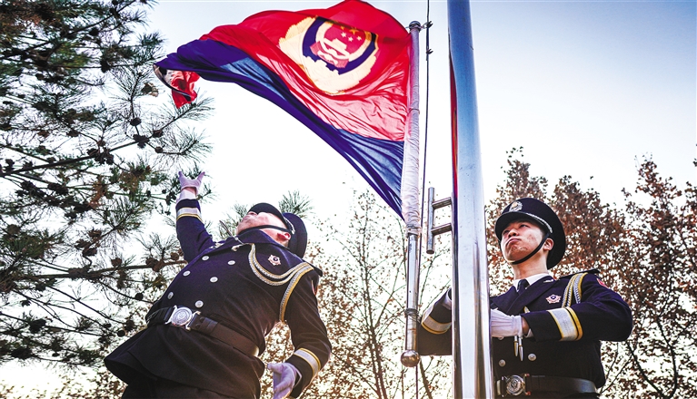 西安市公安局舉行警旗升旗儀式(資料照片)。通訊員 龍?jiān)茢z