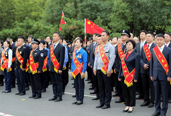 現(xiàn)職省級(jí)領(lǐng)導(dǎo),省直各部門、各人民團(tuán)體主要負(fù)責(zé)同志,省級(jí)各民主黨派主要負(fù)責(zé)人,機(jī)關(guān)干部、學(xué)校師生、企業(yè)職工、武警官兵、公安民警、消防救援指戰(zhàn)員和社會(huì)各界群眾代表等3萬多人參加升國(guó)旗儀式。