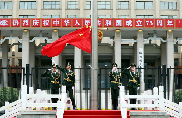 10月1日,我省在西安新城廣場(chǎng)隆重舉行升國(guó)旗儀式,慶祝中華人民共和國(guó)成立75周年。
