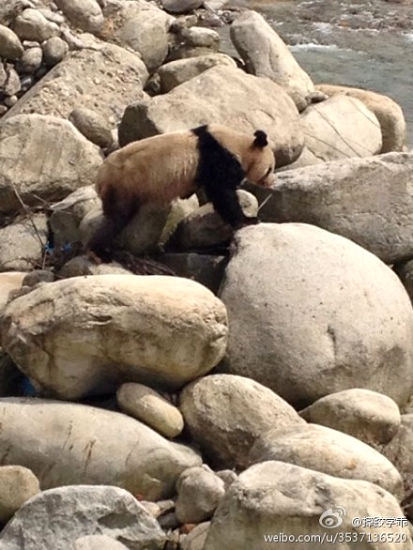 大熊貓受到驚嚇徘徊在河邊。(圖片來源于網(wǎng)絡(luò))