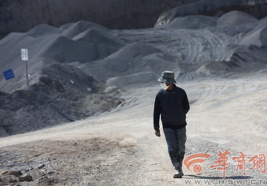 石料開采加工時(shí)粉塵嚴(yán)重,工人作業(yè)時(shí)都需戴防護(hù)用具。 記者 鄧小衛(wèi) 文/圖