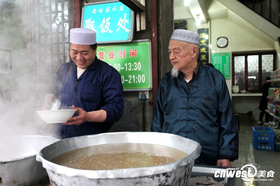 水盆羊肉的制作說來簡單,做好了,卻也不易。新鮮的牛羊肉要用淡鹽水浸泡,漂凈血水。以新鮮的羊骨熬湯,熬三四個小時后,再下肉,煮肉,牛肉要煮七個小時,羊肉要煮三個小時,而調料包中的桂皮、草果、大香、小香、丁香、良姜等等,全都要按老規(guī)矩來,幾斤肉配多少料,都有定數(shù)。在老白家,一百多年來,從未改變過。D8w安康新聞網