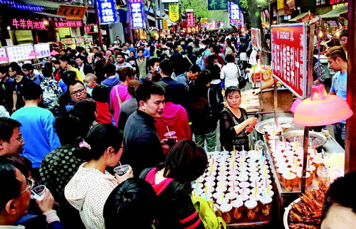 清明小長(zhǎng)假,名揚(yáng)海內(nèi)外的西安市北院門小吃一條街上,灌湯包子、柿子餅、羊肉泡饃、水盆羊肉、鏡糕、烤全羊等上百個(gè)品種的特色小吃吸引了世界各地?cái)?shù)以萬(wàn)計(jì)的游客……