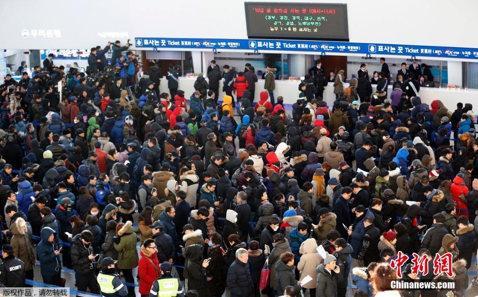 韓國(guó)“春運(yùn)”火車票開售 民眾徹夜排隊(duì)搶票