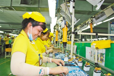 | 越南前江省龍江工業(yè)園內(nèi),浙江方正電機(jī)越南子公司的生產(chǎn)線上,當(dāng)?shù)貑T工正在工作。 |