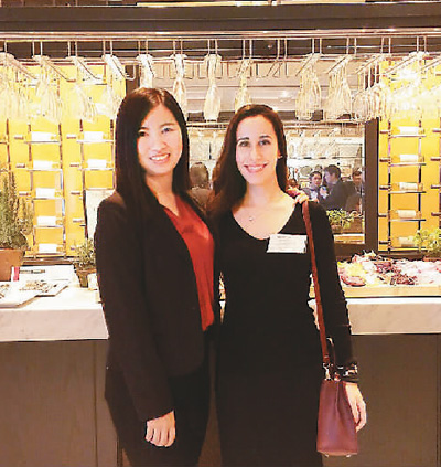 | 就讀于美國康奈爾大學(xué)酒店管理專業(yè)的張悅芊(左)積極參加校內(nèi)外的活動。圖為她在學(xué)院校友會活動上的留影。 |