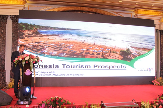 印尼國(guó)家旅游部部長(zhǎng)阿里夫·雅赫亞發(fā)表講話