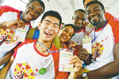 | 去年暑假,江蘇大學(xué)“大眼睛”和“桑梓心”支教團(tuán)的50多名中外大學(xué)生奔赴安徽金寨、貴州六盤(pán)水、江西吉安等地,開(kāi)展為期一個(gè)月的公益支教活動(dòng),為貧困山區(qū)的留守兒童送去關(guān)懷。圖為中外大學(xué)生志愿者開(kāi)心出征支教。人民視覺(jué) |