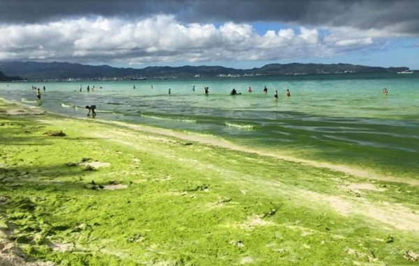 長灘島的一片白沙灘海藻滋生。(圖片來自菲律賓媒體,拍攝日期為2017年3月)
