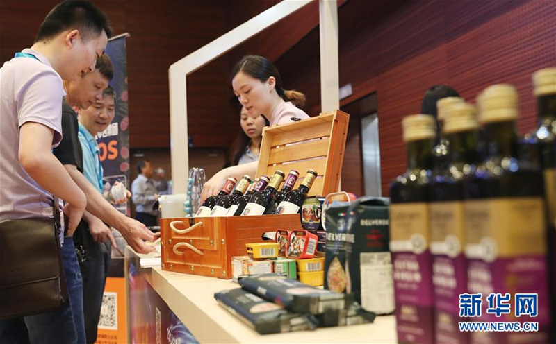 在上海舉行的2018中國國際進口博覽會食品展商客商供需對接會上,參觀者向展商工作人員咨詢商品信息(6月14日攝)。 新華社記者 方喆 攝