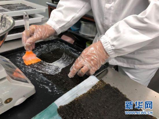 圖為“Kimmaru”工作人員演示制作紫菜干脆片。新華社記者 耿學鵬 攝