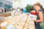 2017年9月2日,前來(lái)廈門采訪金磚國(guó)家領(lǐng)導(dǎo)人廈門會(huì)晤的中外記者,在新聞中心選取不同語(yǔ)言版本的《習(xí)近平談治國(guó)理政》……