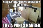 當你做飯時總舉著食譜可不方便,但你還沒有一個食譜夾,那么帶著夾子的衣架可以派上用場,你還可以把它掛在廚房柜的把手上。 當我們忙碌……