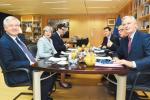 圖為12月8日,英國首相特蕾莎·梅(左二)與歐盟委員會主席容克(右二)在比利時布魯塞爾的歐盟總部會面。