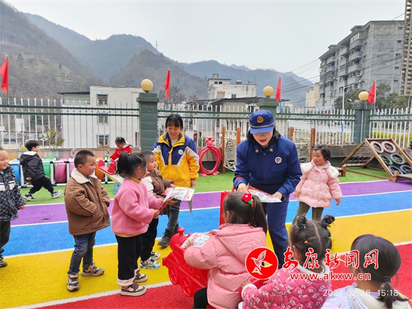 檢查過程中,鎮(zhèn)新時代文明實(shí)踐所消防服務(wù)隊(duì)志愿者和城關(guān)鎮(zhèn)消防所工作人員在廣大師生中開展了消防知識宣傳活動。在安坪村幼兒園操場上,身著“火焰藍(lán)”的小姐姐和小朋友們進(jìn)行了一場別開生面的互動。“小朋友們,你們知道發(fā)生火災(zāi)了要撥打哪個電話號碼嗎?”“119!”她用通俗易懂的語言和生動的表情,向小朋友們講解消防知識宣傳冊,并展示了消防服和消防器材,讓孩子們在輕松愉快的氛圍中增強(qiáng)了安全意識。