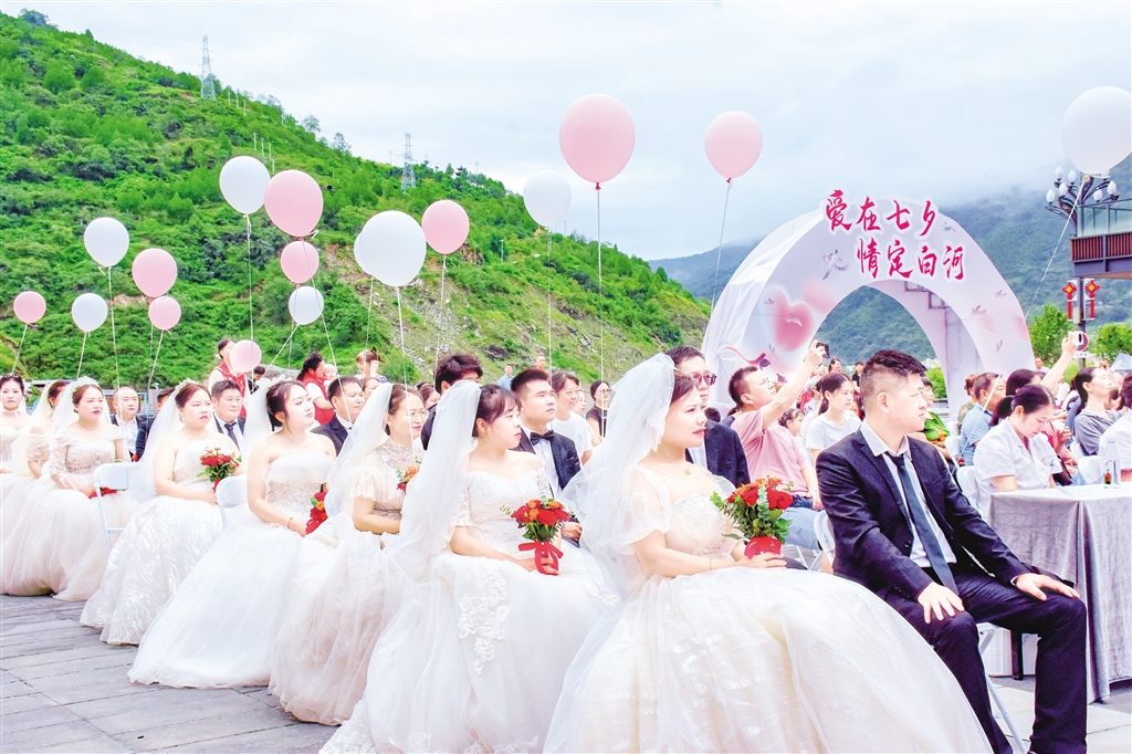 8月29日上午,“愛在七夕·情定白河”2025年白河縣新時代文明實踐集體婚禮主題活動在河街寶石文化廣場浪漫啟幕。來自各行各業(yè)的8對“珍珠婚”夫婦、8對新人齊聚一堂,通過分享婚姻保鮮秘訣、頒發(fā)結(jié)婚證、簽訂承諾書、開展婚姻家庭輔導(dǎo)等簡約而莊重的儀式,在各界代表和親朋好友的見證祝福下,開啟幸;橐鲂缕拢脤嶋H行動踐行婚事新辦、喜事儉辦的文明新風(fēng)尚。(紀(jì)道婭 攝)pQy安康新聞網(wǎng)