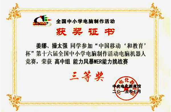 “中國(guó)移動(dòng)‘和教育’杯”第十六屆全國(guó)中小學(xué)電腦制作活動(dòng)結(jié)果日前揭曉,白河高級(jí)中學(xué)學(xué)生姜娜和操太強(qiáng)在高中組能力風(fēng)暴WER能力挑戰(zhàn)賽——&……