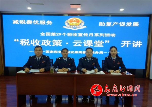 區(qū)局黨委委員、副局長張平同志表示,“在全國29個收稅宣傳月活動中,安康高新區(qū)稅務局聚焦“減稅費優(yōu)服務 助復產促發(fā)展”主題,持續(xù)唱響“便民辦稅春風行”行動,借助云課堂的形式迅速將稅費大禮包送到納稅人手中,以實際行動努力當好企業(yè)復工復產的服務員。”
