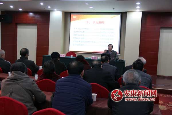 安康新聞網(wǎng)訊(通訊員 楊浩)為進(jìn)一步深入學(xué)習(xí)貫徹黨的十八屆五中全會(huì)精神,11月25日上午,漢濱區(qū)委老干局組織全區(qū)離退休干部、各單位老干專干、老干局全體機(jī)關(guān)干部共計(jì)200余人,在安康金都國貿(mào)四樓二號會(huì)議廳舉辦老干部學(xué)習(xí)黨的十八屆五中全會(huì)精神報(bào)告會(huì),安康市理論宣講團(tuán)副團(tuán)長趙富振同志為全區(qū)老干部做黨的十八屆五中全會(huì)精神輔導(dǎo)報(bào)告。