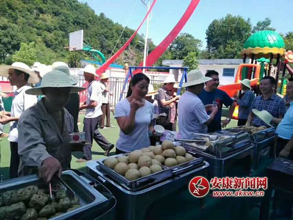 洪山鎮(zhèn)地處秦巴山區(qū)鳳凰山富硒帶,當(dāng)?shù)赜杏凭玫纳a(chǎn)富硒苦蕎的傳統(tǒng)和經(jīng)驗(yàn)。脫貧攻堅(jiān)戰(zhàn)役打響之后,鎮(zhèn)上通過招商引資,引進(jìn)安康有名的蓮花餐飲集團(tuán)在當(dāng)?shù)爻闪⒓嗍w種植、產(chǎn)品研發(fā)、生產(chǎn)、銷售于一體的馬非馬生態(tài)農(nóng)業(yè)發(fā)展有限公司,在當(dāng)?shù)匕l(fā)展苦蕎種植面積達(dá)5000畝,并采取每斤4元的保護(hù)價(jià)訂單收購?嗍w開秤收購的日子到了,村民們不畏酷暑、興高采烈地用手推車、三輪車把豐收的苦蕎送到收購點(diǎn),收獲著他們的勞動成果。