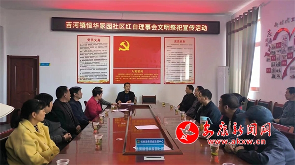 “清明節(jié)是祭奠先人、緬懷逝者、寄托哀思的日子,我們要抓住這個(gè)重點(diǎn)時(shí)間節(jié)點(diǎn),通過持續(xù)的宣傳引導(dǎo)和政策解讀,推動(dòng)移風(fēng)易俗、文明祭掃理念深入人心。”理事會(huì)組織社區(qū)干部、部分黨員群眾代表學(xué)習(xí)了《紅白理事會(huì)章程》,宣讀了《2024年清明節(jié)文明祭掃倡議書》,安排部署了當(dāng)前森林防火工作,號(hào)召大家遵守社會(huì)公德,用綠色、健康、簡(jiǎn)約的祭掃方式表達(dá)對(duì)逝去親人的思念之情,減少集中出行發(fā)生交通堵塞、焚燒紙錢造成火災(zāi)隱患情況發(fā)生。