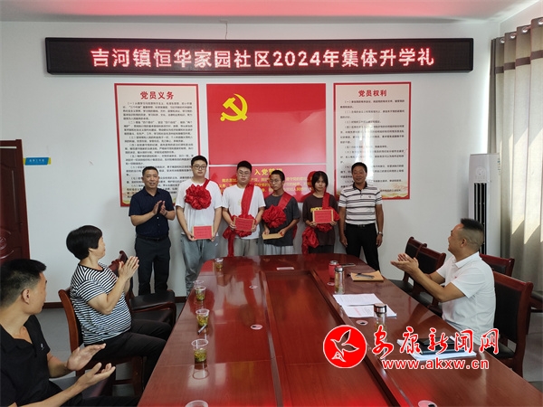 8月16日,漢濱區(qū)吉河鎮(zhèn)恒華家園社區(qū)舉行“弘揚(yáng)新民風(fēng) 拒絕升學(xué)宴”大學(xué)新生集體升學(xué)禮活動,為4名本科大學(xué)新生發(fā)放了助學(xué)金和紀(jì)念品,并簽訂了“弘揚(yáng)新民風(fēng) 拒絕升學(xué)宴”承諾書,用集體升學(xué)禮代替“升學(xué)宴”,爭做拒絕“升學(xué)宴”的踐行者和推動者,營造健康文明、勤儉節(jié)約的良好社會新風(fēng)尚。(圖文/劉化梅) jzp安康新聞網(wǎng)