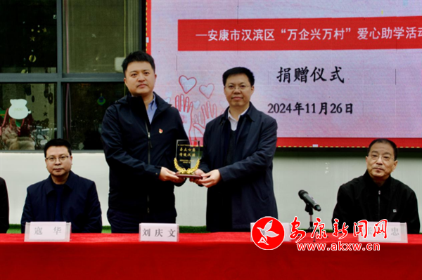 漢濱區(qū)向愛心企業(yè)贈送紀念品 甘超/圖