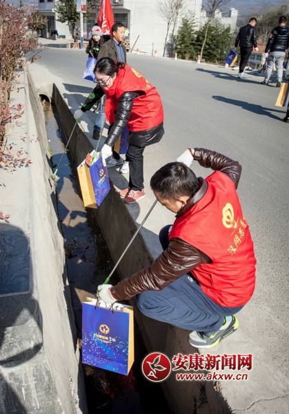 大家在漢陰縣三元村支書的帶領(lǐng)下熱情滿滿,不畏嚴(yán)寒,沿村道兩側(cè)清除水渠中殘留的生活垃圾,不放過任何一個(gè)死角。下田地,上溝渠,無數(shù)次彎腰,很快便將垃圾一掃而空。