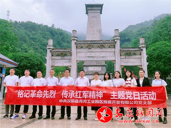 本網(wǎng)訊(通訊員 文霞 陳紫薇) 為慶祝建黨102周年,銘記革命先烈遺志,傳承紅軍革命精神, 6月16日,漢陰縣月河工業(yè)園區(qū)投資開發(fā)有限公司全體黨員職工赴旬陽紅軍鎮(zhèn)開展"銘記革命先烈,傳承紅軍精神"主題黨日活動,進(jìn)一步增強(qiáng)黨員干部理想信念,鼓足干事創(chuàng)業(yè)熱情。