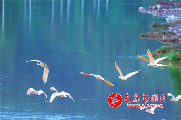 “現(xiàn)在這河壩邊上的朱鹮越來越多了,以前就能看到幾只,現(xiàn)在經(jīng)常能看到一大群,一二十只在河壩邊上找食吃,它們也不怕人,我們有時候在河壩邊上種莊稼,逛的時候都能看到,離我們很近……”作為國家一級保護動物,朱鹮被視為國鳥,被譽為“東方寶石”。近日,有村民在漢陰縣月河河畔發(fā)現(xiàn)20多只朱鹮在河邊漫步覓食的悠閑畫面,美不勝收。隨著漢陰的生態(tài)不斷向好,不僅野生朱鹮的數(shù)量穩(wěn)步增長,其活動范圍亦在不斷擴大。