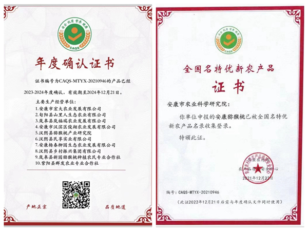本網(wǎng)訊(通訊員 鄒永康 蘇凌云)近日,由安康市農(nóng)科院組織申報(bào)的“安康獼猴桃”名特優(yōu)新農(nóng)產(chǎn)品通過(guò)農(nóng)業(yè)農(nóng)村部農(nóng)產(chǎn)品質(zhì)量安全中心年度確認(rèn)。漢陰縣鄉(xiāng)村振興集團(tuán)有限公司等3家經(jīng)營(yíng)主體選送的漢陰優(yōu)質(zhì)獼猴桃順利通過(guò)農(nóng)業(yè)農(nóng)村部農(nóng)產(chǎn)品質(zhì)量安全中心復(fù)審,被授權(quán)為“安康獼猴桃”全國(guó)名特優(yōu)新農(nóng)產(chǎn)品。