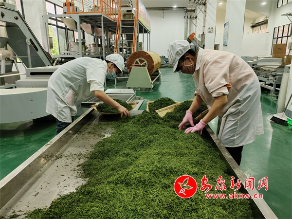 在漩渦區(qū)域加工廠的制茶生產車間內,鮮嫩的茶葉經過殺青、揉捻、干燥、提香等程序,醇香的茶便新鮮出爐。“今年在開采之前,鎮(zhèn)政府面向茶葉產業(yè)合作社負責人和技術骨干組織了一次統(tǒng)一的培訓,對采摘手法,采摘標準進行了統(tǒng)一的指導培訓,便于我們后面的生產和后期產品的把控。”茶廠負責人馮衛(wèi)平說。