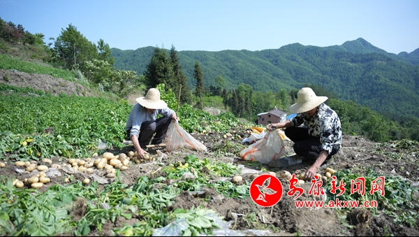 “大家加把勁兒,惠康源公司今天下午要2000斤土豆。”在漢陰縣雙河口鎮(zhèn)黃龍村的土豆種植基地里,駐村第一書記唐建安一邊忙著和村民一起采收土豆,一邊督促進(jìn)度。十余位村民分工有序,忙而不亂,隨著鋤頭的揮舞,一顆顆外觀飽滿、個(gè)頭勻稱的土豆破土而出,分揀、裝袋……田地里每個(gè)人的臉上都掛滿了豐收的喜悅。