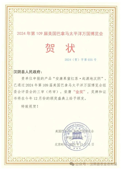 此次“安康果蜜紅·起源地漢陰”能夠在巴拿馬萬國博覽會(huì)這個(gè)世界級(jí)舞臺(tái)上獲得金獎(jiǎng),是對安康富硒茶邁向國際的肯定,有利于擴(kuò)大和提升安康富硒茶的品牌影響力。下一步,漢陰將以此為契機(jī),加強(qiáng)技術(shù)指導(dǎo),推動(dòng)果蜜紅茶標(biāo)準(zhǔn)化生產(chǎn);并加大市場推廣力度,拓寬銷售渠道,提高產(chǎn)品的市場占有率;持續(xù)鼓勵(lì)創(chuàng)新,培育更多優(yōu)質(zhì)茶企業(yè),推動(dòng)茶產(chǎn)業(yè)轉(zhuǎn)型升級(jí)與高質(zhì)量發(fā)展,讓“安康果蜜紅.起源地漢陰”成為茶產(chǎn)業(yè)的一張亮麗名片,在國內(nèi)外市場大放異彩。