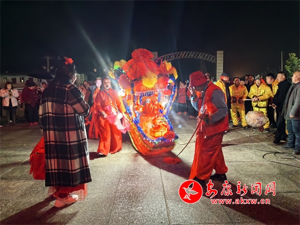 在位于漢陰縣平梁鎮(zhèn)的興隆佳苑社區(qū),春節(jié)期間,小區(qū)里處處洋溢著節(jié)日氛圍。夜幕降臨,社區(qū)廣場響起陣陣鑼鼓聲,;ù硌菡介_始。只見表演者雙手提船、配合默契,船體隨著“波浪”旋轉(zhuǎn)、顛簸,身穿喜慶艷麗的服裝、頭戴五彩頭飾的表演人員個個精神抖擻,一邊前行,一邊唱著漢陰本地的花鼓戲,祈求來年風(fēng)調(diào)雨順、福壽安康。翻飛的彩扇、華麗的彩船,精心編排、詼諧幽默的表演,為社區(qū)群眾呈現(xiàn)了一場精彩的視覺盛宴。