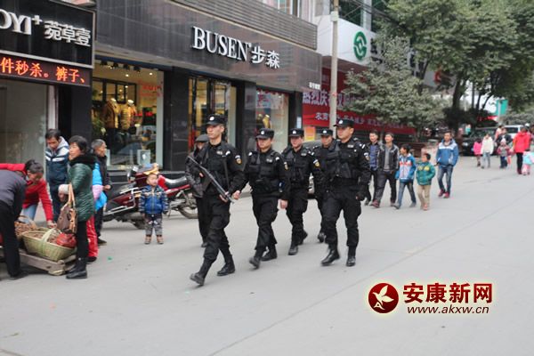 漢陰警方加強“元旦”期間城區(qū)武裝巡邏