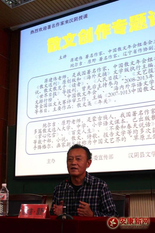 安康新網(wǎng)訊 通訊員 姜波:金秋送爽,文苑芬芳。9月9日,漢陰中學(xué)階梯教室坐無(wú)虛席,300余雙渴求知識(shí)的眼睛聚焦在著名作家鮑爾吉•原野和蔣建偉兩位老師的精彩……